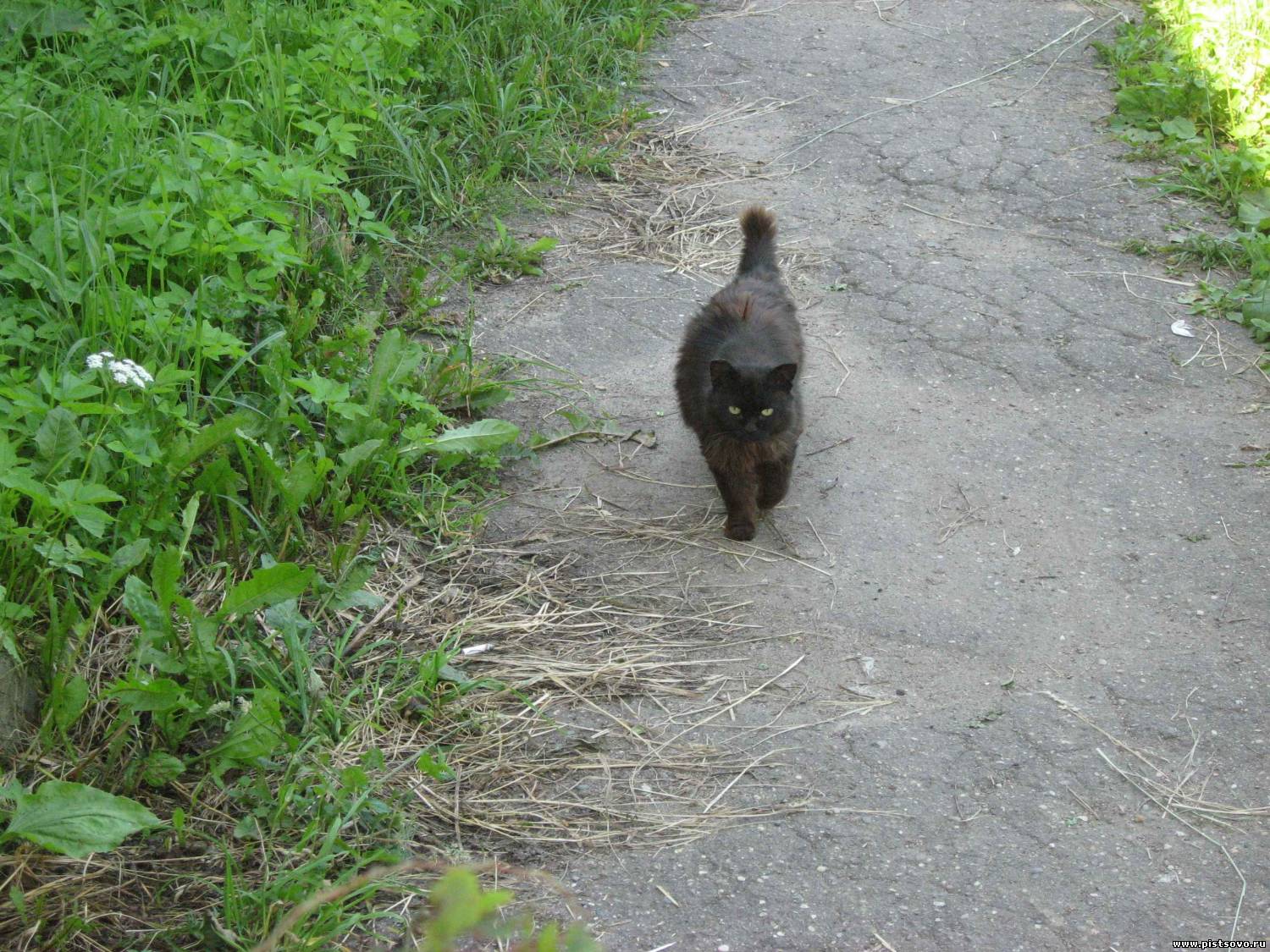 | Первые три дня я не могла поверить, что я в Писцове. Я ходила медленно, внимательно всё разглядывая. У меня создалось впечатление, что в Писцове живут в основном черные коты и кошки. Только я выйду на променад, как тут же у пятиэтажек мне навстречу выходит очередной черный кот, не спеша переходит мне дорогу и рядом нет желающих пройти по этой дорожке. Я на пару секунд застываю, а потом продолжаю путь. Причем коты попадаются разной упитанности, но одного я назвала Бегемотом (он просто персонаж Булгакова). На площади обратила внимание на маленького толстенького пёсика, который явно работает на полставки в киоске, рядом с которым останавливаются маршрутки и автобусы. У него взгляд Кисы Воробьянинова («мисье, подайте, пожалуйста, бывшему депутату государственной думы»), мордуленция хитрющая. Я сразу же кинулась в киоск за сосисками. Продавщица мгновенно поняла, для кого я это покупаю, надрезала сосиски. Он меня дождался, понюхал и нехотя взял в рот, есть не стал, а переваливаясь толстыми боками двинулся к памятнику Рыскину, а дальше в кусты закапывать. Первую неделю моего пребывания Писцово утопало в дуднике (это высокая трава с белыми крупными чашечками, мини борщевик). А потом начался сенокос. Вдоль Большой дороги жители выкашивали траву, запах стоял обалденный. Мне понравились лиловые колокольчики, которые буквально заполонили всё Писцово. Они цвели и в палисадниках, и в бурьяне заброшенных домов. Борщевик полностью задавил ромашковое поле.