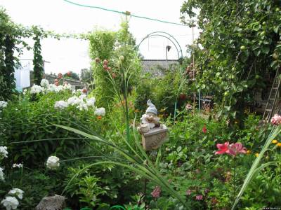 Приехала я в Писцово в конце июля. С погодой мне после жары в Сибири несказанно повезло. Хотя именно погода и уложила меня на пару дней (вдруг прихватило спину). Но как только я смогла встать, я тут же отправилась гулять по посёлку. Посёлок стал заметно чище. Я с трепетом вошла в святая святых — проходную фабрики, в которой расположилось несколько магазинчиков. Прошлась до конного двора, на месте которого какие-то гаражи. Мимо бани прогулялась до улиц Калина, которых, как я вдруг обнаружила, несколько. Именно на Калинина увидела в огородах чудеса ландшафтного дизайна. Весёлые гномики приветливо улыбались сквозь щели изгороди, как будто радуясь такому огромному обилию яблок в садах. Я переводила изумленный взгляд с одной яблони, увешанной крупными зелёными яблоками, на другую, свесившую свои ветви на противоположной стороне улицы, с румяными наливными яблочками. Да, урожай яблок в этом году будет отменный. На 3-ей линии в конце улицы у крайнего дома выстроилась семейка мухоморов с красными тазами вместо шляпок. Рыжий кот, лениво обходя лужи, скрылся в грибном ряду. Я постояла у маленького пруда и полюбовалась издали на колокольню в Зареке, которая как непременный атрибут подмосковной провинциальной декорации выглядывала из густой зелени вездесущего борщевика, кустов ивняка и ещё чего-то нежно-сиреневого. И в душе наступила такая благодать. Писцово — ты моё самое любимое место на земле. Меня здесь уже никто не знает. Я всё время представляла, что я почувствую от осознания того, что я здесь незнакомка. И поняла, что я всегда буду чувствовать родство с этим местом.