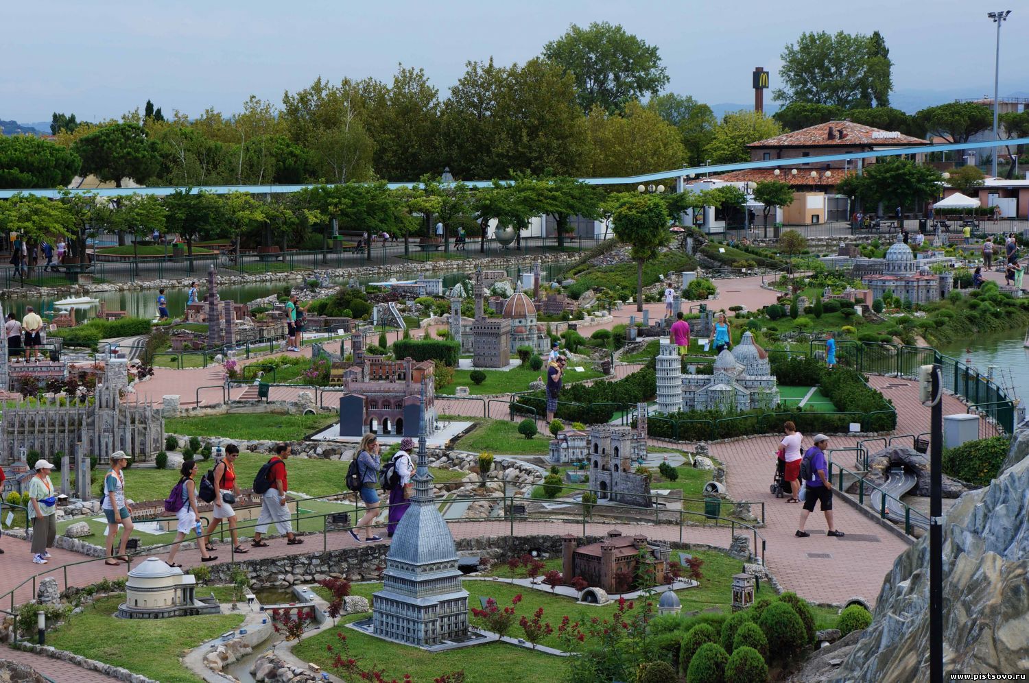 | Завершаю свои записки путешественника. Переночевав в Сан Марино, мы вернулись в начальный пункт нашего путешествия - курортную столицу Римини. Наш тур «Италия — города искусств» на этом заканчивался. Нас привезли в аэропорт. Кто-то из нашей группы возвращался в Нск, а нас пересадили в маленький автобус и повезли в отель «Астория». Мы ещё неделю будем отдыхать в Римини. В отеле мы подождали пока нам приготовят номера, потом пошли перекусить и на пляж. На пляже я заняла своё место под зонтиком на лежаке с книжкой в руке, а молодежь по очереди шла купаться с Яриком в море. Вечером мы совершили променад по центральной улице Римини, на которой расположены все отели, рестораны и кафе. Каждый день на этой улице были ярмарки. В первый день была ярмарка детских подержанных вещей, на следующий -ярмарка HandMad. Вот эта ярмарка мне понравилась больше всего. Потом была ярмарка антиквариата и т.д. На следующий день Дмитрий взял на прокат машину и мы поехали сначала в парк развлечений Ольтремаре. Там мы сразу пошли в дельфинарий. Мы не знали, когда будет представление, поэтому просто сидели и любовались на дельфинов, которые носились наперегонки друг с другом в бассейне дельфинария. Один дельфин с разбегу вылетал на арену и делал стойку на одном плавнике, изогнув хвост колечком. Мы ему аплодировали и кричали «Браво!». Талант не пропьёшь. Остальные таким рвением не отличались. Вышли мы из дельфинария и окунулись в доисторический лес с тропическими растениями, шумом водопадов и крокодилами в воде. А наверху над проемом в скале, поросшем зеленью, сидел, раскинув крылья, птеродактиль. Пройдя через этот проём, полностью погружаешься в атмосферу первобытного леса. Вдруг весь лес начинает заволакивать туманом и так и кажется, что сейчас из тумана выйдет гигантский динозавр. Видели мы и скорлупу вылупившихся динозавриков и следы, заполненные водой. В общем, Динотопия нам понравилась. Спустившись по эскалатору вниз, мы оказались в аквариуме на дне бассейна дельфинария и уже через стекло наблюдали за игрой дельфинов в воде. Они такие любопытные. Дмитрий с Яриком приложили руки к стеклу и сразу же сверху появилась любопытная мордуленция дельфина и кадр у меня получился замечательный. Мы потом с удовольствием нафотографировались с этими чудными животными. Я их очень люблю. Нагулявшись по дельфинарию, мы сели в машину и поехали в другой пригород Римини - в Океанариум. Вот это полное надувательство. Территория огромная, а в каждом здании маленькие окна, в которых можно посмотреть на черепах, на змей и вообще на всякую морскую мелюзгу. Единственная достопримечательность этого Океанариума — огромный аквариум с настоящими акулами. Ярик у нас просто замер около стекла. Они размером больше его. После Океанариума мы отправились в парк «Италия в миниатюре». Тут у меня глаза разбежались от такого изобилия миниатюрных копий достопримечательностей Италии. Пока мы с Полинкой бродили по парку, Дмитрий с Яриком пристроились у штурвалов-автоматов и управляли маленькими кораблями, которые находились в акватории парка. Мимо нас вверху по рельсам проносились поезда с туристами. Обойдя весь парк, мы вдруг обнаружили мини Венецию, где масштаб зданий был 1:20, т.е намного крупнее, чем во всем парке с крошечными моделями. Мы с Полинкой, как два Гулливера, облокотились с обеих стор