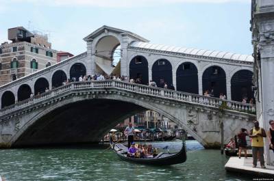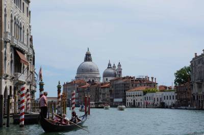 | В Лидо-ди-Езоло мы прибыли в 10 часов вечера. Мы с Яриком затащили свои вещи в номер и он попросил включить ему мультики до ужина. Я попыталась пультом включить телевизор, а он не включается (надо было включить его в розетку, но ведь до этого надо было догадаться, а после дороги мозги не включились). Я говорю: «Здесь что-то телевизор не включается». А Ярик, подперев голову рукой, грустно говорит: «Здесь и курить нельзя» (около телевизора висел плакатик с перечеркнутой сигаретой). Я упала со смеху. Поужинали мы в ресторане отеля и разошлись по своим номерам. На следующий день в 8 утра нас привезли к пристани и мы, погрузившись в катер, отчалили от берега. Я так давно мечтала о Венеции, что мне казалось нам подадут корабль с алыми парусами. И всё равно - мы плывем в Венецию. Пришвартовавшись недалеко от площади Сан Марко нас повели в цех Мурановского стекольного завода смотреть, как изготовляют знаменитое мурановское стекло. Мастер за минуту выдул нам стеклянного коня. А дальше нас повели в залы готовой продукции. У меня глаза разбежались от разноцветья стеклянных изделий. Цены здесь, конечно, кусались. Но я всё равно купила себе на память нежно-голубое ожерелье из бисера со стеклом. С завода мы отправились на площадь Сан Марко. Нас там встретила гид Паола, итальянка. Мы встали в очередь, чтобы войти внутрь собора Св. Марко. Пока стояли в очереди, я купила в лавке сувениров соломенную шляпку (т.к солнце уже стало сильно припекать) и сувенир: качающуюся гондолу с пассажирами на солнечной батарее. Напротив собора св. Марка выстроилась очередь на колокольню, с которой открывается вид на всю Венецию. Я крутила головой туда-сюда, до сих пор не веря, что я в Венеции. После храма мы пошли по узким улочкам-каналам Венеции. Мимо проплывали гондолы, в некоторых местах образовывались пробки на воде. В воздухе стоял запах чистой морской воды. Паола сказала, что в Венеции вода ежедневно полностью обновляется во время приливов и отливов. Я успевала только щёлкать фотоаппаратом. В 19 веке в Венеции , после получения наследства и видимо большого, поселился английский поэт Байрон. Байрон приехал осенью 1816 года, в то время город представлял собой, по словам советского критика А. Виноградова (исследователя жизни и творчества Джорджа Байрона), «гигантский ресторан с отдельными кабинетами, кофейню европейских туристов, где эпигоны патрицианского купечества, ломавшие хребты своим соперникам на рынках Африки, Палестины и Индии, перемешивались в игорных домах с авантюристами разного масштаба, стекавшимися в Венецию после падения аристократической Республики». Об этом же поэт сообщал 2 января 1817 года в письме своему издателю: «Состояние нравов здесь почти то же, какое было во времена дожей". Здесь обретали авантюристы всех мастей: от Казановы до графа Калиостро. И тем не менее Венеция его привлекала. Там бьет крылом История сама, И, догорая, рдеет солнце Славы Над красотой, сводящею с ума...