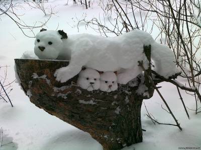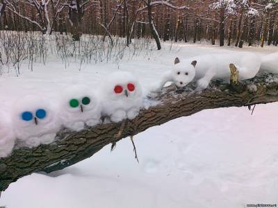 | Сегодня проверяла почту и случайно наткнулась на эту красоту. Сколько же у нас в России талантов. Автор этого снежного чуда живёт в сельской местности. Весь лес в округе превратился в сказку. Я впервые вижу сугробы, превращённые в снежные фигуры. Очень необычно и оригинально.