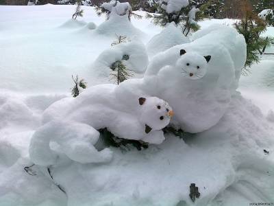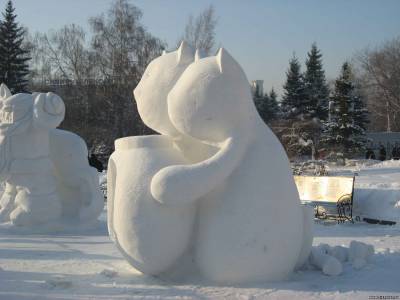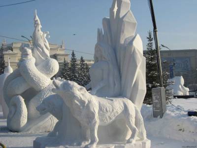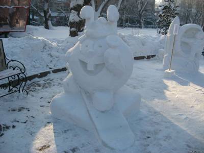 | Каждый год на Рождество у нас в городе проводится фестиваль снежных фигур. Приезжают команды художников из разных городов и ближнего зарубежья. Денег за это художники не получают, их награждают грамотами. Своим творчеством они занимаются в самые лютые морозы и, тем не менее, каждый год количество команд участниц не уменьшается. Когда морозы на пару дней ослабли, я сходила полюбоваться на снежные скульптуры. Вместе со взрослыми скульпторами трудятся ребятишки. Из детского творчества мне понравилась скульптура весёлого смайлика на сноуборде. Кроме этого каждый год у нас строят для ребятни большой красивый Ледовый городок. Там мы ещё не были, уж очень холодная у нас в Сибири в этом году зима, впрочем, как и в прошлом году.