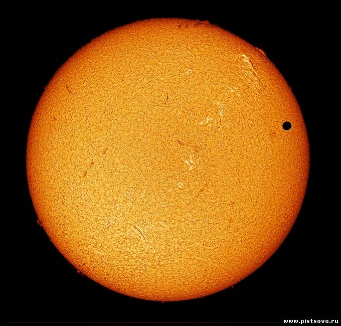 У нас сегодня в городе на площадях с 5 часов утра установили телескопы для желающих понаблюдать за редким космическим явлением: прохождением Венеры перед Солнцем. Погода была самая благоприятная: абсолютно чистое небо. Я в обеденный перерыв посмотрела, а то следующего такого явления через 105 лет можно и не дождаться. Венера уже была на самом краешке Солнца. Надо было подождать и досмотреть, как она уплывает. Ломоносов именно так в 18-м веке сделал открытие о том, что на Венере есть атмосфера. Но об этом я прочитала уже после того, как ушла с площадки наблюдения.