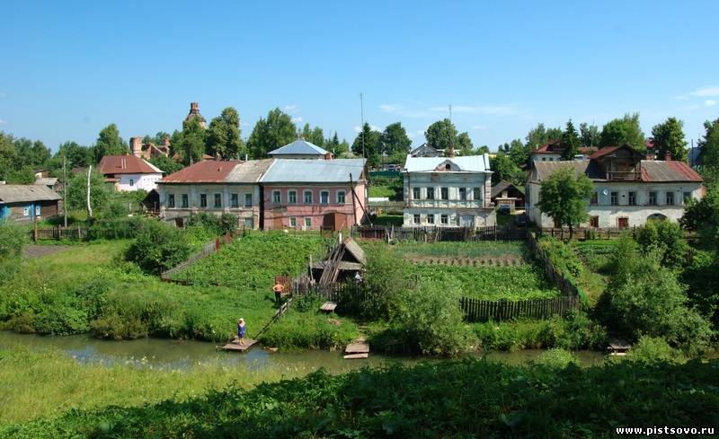 PVR, на автомобиле действительно до этой сказочно-красивой и умно-организованной деревни можно добраться только через Кострому по направлению село Красное и далее. Но смысл делать такой крюк есть лишь в том случае, если задержаться в Русинове на несколько дней. При этом о собственном быте беспокоиться надо самим. ( Насколько я мог увидеть и понять, то Русиново не создавалась для паломничества, она обустраивалась для жизни дачников и аборигенов, поэтому ни гостевых домиков, ни харчевен в ней нет). Мы сделали иначе. Побывали в Плесе, машину оставили на набережной, договорились с перевозчиком-лодочником и на пару часов переправились на костромской левый берег. Если захотите побывать в Плесе, рекомендую, чтобы не разочароваться (что случилось с моими московскими знакомыми), настроить себя на следующее: по большому счету Плес, который стоит посмотреть и понять, чем же он заворожил Левитана,это набережная Волги с музеями, торговыми рядами и лавками, Волга и Соборная гора. По набережной ,длиной около 1,5 километров , за 20 рублей туда-сюда курсирует электроавтомобильчик на десяток пассажиров, с остановками по требованию. От причала периодически отходит на водную экскурсию теплоходик ( билетик за 300 рублей). В самом Плесе несколько небольших отелей, из которых для меня интересен "Гостевой Дом" Елены Маньенан, человек на 12 с русской домашней кухней и прекрасными видами на Волгу. Дорога от Иваново через Приволжск до Плеса по российским меркам почти без изъянов ( прямо правительственная трасса). В начале июля предполагается в Плесе очередной текстильный фестиваль "Льняная палитра" с массой гостей и Славой Зайцевым в качестве "свадебного генерала". Но побывать в Плесе стОит, там Русью пахнет!!!