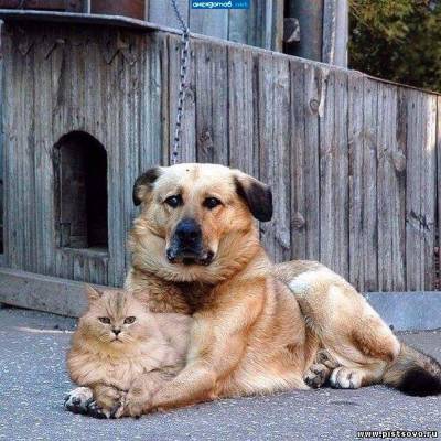 Совершенно согласна, Виктор Германович. Глаза пса мудрые, много повидавшие и понимающие. Как не быть тут такой безмятегой коту - такая защита рядом! Такое большое теплое сердце!