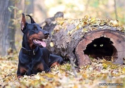 КОТ моложе ПСА по возрасту, спокоен и безмятежен под защитой такого покровителя!