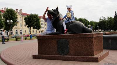 И вот только в этом июне у меня получилось побывать в тех местах, что описываются в романе. Вернее, мои гродненские друзья, узнав о моей мечте, сделали мне подарок. Утром мы отправились на юг от Гродно. И где-то через час оказались в глухомани (по белорусским меркам) в райцентре Волковыск. Спортивные "треники" с китайскими тапочками (слава Богу, что не с носками!) на местных парнях, в центре города - пустотелая скульптура волка - символ города и района, НО чистота и ухоженность города меня приятно удивила.