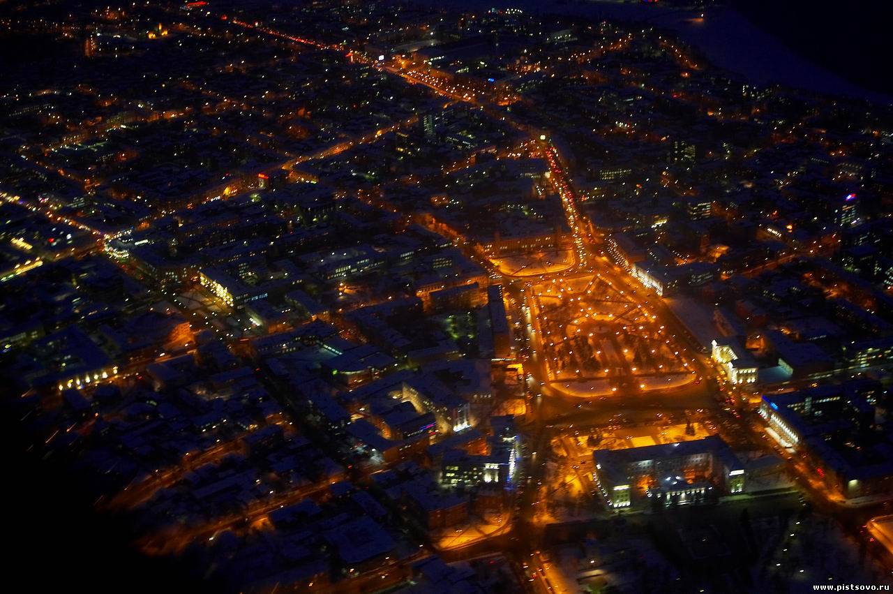 Ночные огни города, где в июле так много тополиного пуха...