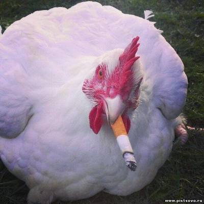 | Кого-то страшно мне напоминает эта курящая курица, не хватает только мобильника в лапе...