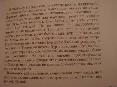 | ООооо) Интересно. В книге написано, что странно как в такие старые времена подземный ход мог проходить под речкой Черной. действительно, как? 0))) жаль этого никто не знает...