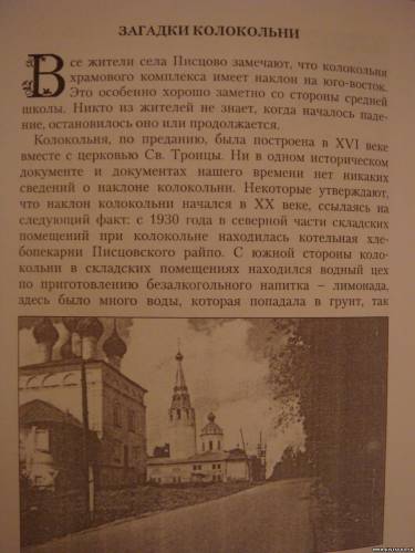 | Да я тоже присоединяюсь ко всем и очень рада что есть такой замечательный сайт)))))) Хотела спросить вот что. Я прочитала книгу В.Ф. Сучкова ПИСЦОВО (были, легенды, предания, исторические очерки). Приобрела все книги, что есть в этом году. Хотела бы узнать читал ли ее кто нибудь, и какие остались впечатления? Особенно интересно мне было прочитать главу "Загадки колокольни". Слышали ли вы что нибудь о ее наклоне?